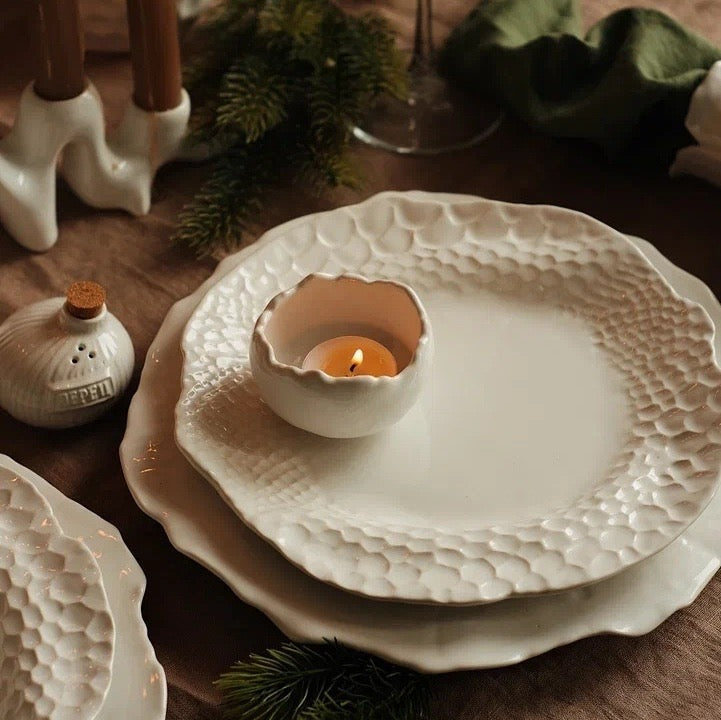 Handmade plate, snake scale imitation dish, symbol of the year 2025, diameter 23cm, soft porcelain, white, glossy. Dishwasher safe. Matches the entire White Pearl collection